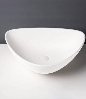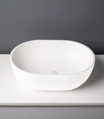 Vasque à poser circulaire en Solid Surface haut de gamme. Dimensions : 400 x 150 mm. Finition blanc mat pur au toucher soyeux. L'élégance minimaliste pour les salles de bain d'exception au Maroc.